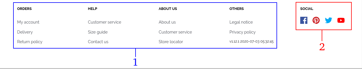 Los enlaces de redes sociales se configuran directamente en el código fuente en el archivo /theme/components/organisms/o-footer.vue La imagen utilizada se encuentra en: /theme/assets/newsletter/png/newsletter.png